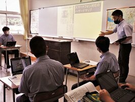 NIEとICTは親和性が高く、記事をプロジェクターで白板に大きく投影すると、生徒がパッと注目し、教室に一体感が生まれます。新聞はフォント(見出し)の大小で出来事の重要性が分かり、図や絵が効果的で、一目で内容が理解できます。ICT機器の導入で、今後ますますNIE活用の機会が増えると感じています。