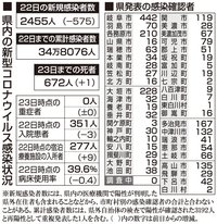 【23日・新型コロナ詳報】岐阜2455人感染、1人死亡 死者の発表は5日連続