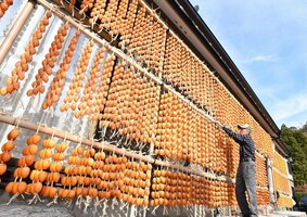 柿すだれ秋風に揺れる 「連柿」づくりが最盛期 岐阜・山県
