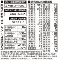【25日・新型コロナ詳報】岐阜2748人感染、3人死亡 死者の発表は7日連続