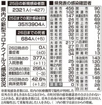 【26日・新型コロナ詳報】岐阜2321人感染、5人死亡 死者発表は8日連続
