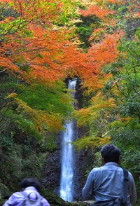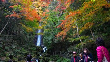 養老の滝、秋の彩り 紅葉ピーク、岐阜・養老町