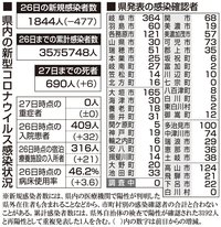 【27日・新型コロナ詳報】岐阜1844人感染、6人死亡 病床使用率46%