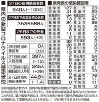 【28日・新型コロナ詳報】岐阜840人感染、4日連続前週上回る 死者は3人