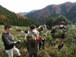 「岐阜のマチュピチュ」でお茶を収穫 三年番茶向けに施設利用者ら 岐阜・揖斐川町