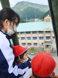 地上25m、熱気球で空から思い出づくり 3月閉校の坂内小中学校