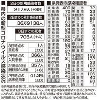 【3日・新型コロナ詳報】岐阜2179人感染、100歳代の女性ら4人死亡 死者の発表は15日連続