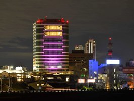乳がん検診、光の啓発 岐阜市役所、ピンクにライトアップ