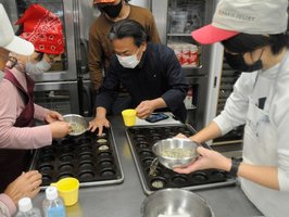 所浩史さん(中央)からスイーツのレシピを教わる受講者ら=岐阜市琴塚、プルシック