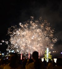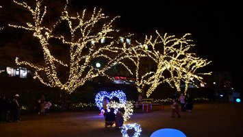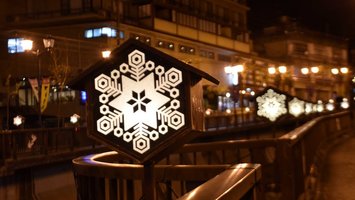 下呂温泉街に光の幻想 イルミやあんどん点灯