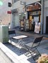 休日の商店街歩道、にぎわい創出 岐阜市・神田町、店舗前に机と椅子設置