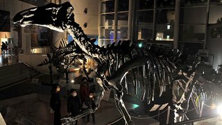 恐竜ティラノサウルスの着ぐるみ姿...