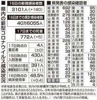 【17日・新型コロナ詳報】岐阜3101人感染、5人死亡 1週間の感染者数、前週の1・23倍