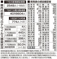 【18日・新型コロナ詳報】岐阜2549人感染、2人死亡 病床使用率50%、9月3日以来の5割到達