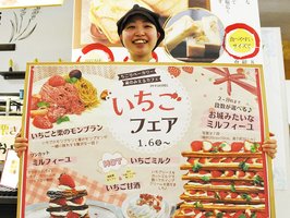 イチゴの巨大ミルフィーユ最大7段、地元産フェア 岐阜・中津川市「ちこり村」で販売