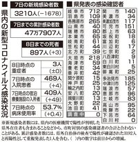 【8日・新型コロナ詳報】岐阜県で3210人感染、日曜日発表では2番目の多さ 死者確認は3人