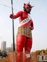国道沿いに巨大赤鬼「疫病退散」 岐阜市の玉性院、2月3日つり込み祭り