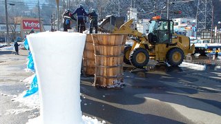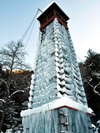 高さ15m、火の見やぐら「氷の塔」に変身 道の駅ひだ朝日村にお目見え