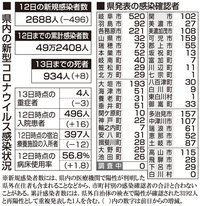 【13日・新型コロナ詳報】岐阜県で2688人感染、8人死亡 死者の発表は39日連続