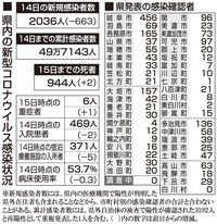 【15日・新型コロナ詳報】岐阜で2036人感染 41市町村で確認、2人死亡