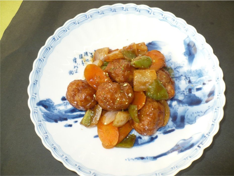 〈豚団子と野菜の味噌炒め〉