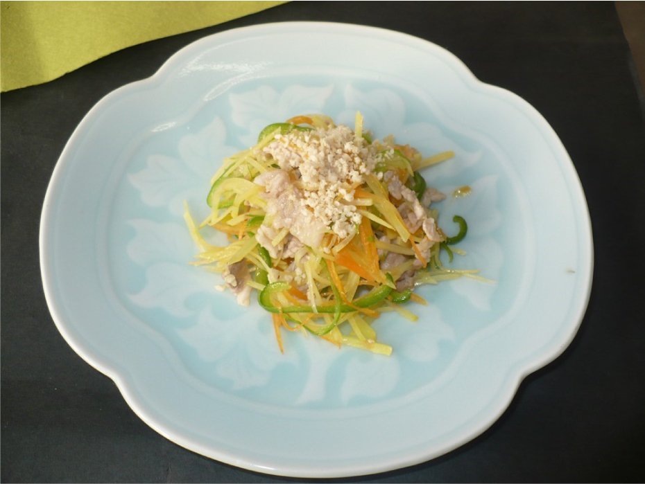 〈豚肉とじゃがいものごま和え〉