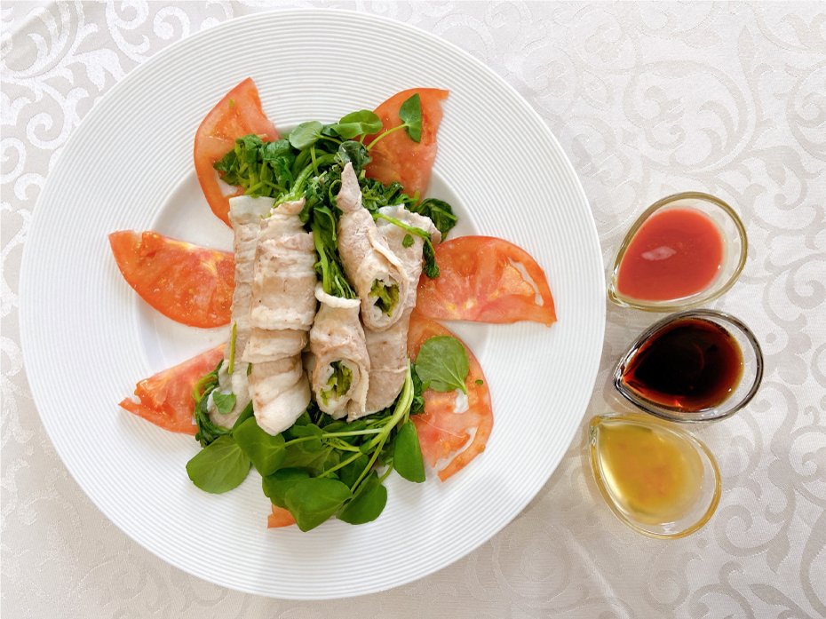 〈トマトとクレソンの肉巻き〉