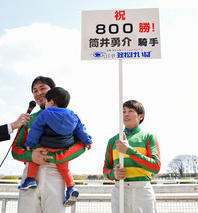 今年2月には通算800勝を達成した筒井騎手。セレモニーでプラカードを持ってくれた佐藤騎手の前で、「すごく調子が良く、リーディングも狙っていきたい」と宣言。モチベーションを高め、一つ一つ丁寧に乗って結果を出していることが、現在の好成績につながっている。