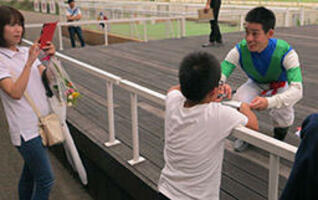 表彰式では、2戦目をソリッドボートで逃げ切った塚本雄大騎手(高知)と一緒にガッツポーズを決め、笑顔がはじけた。渡辺騎手は「内ラチ沿いがいいと聞いていたので、先行馬の後ろでいいポジションが取れた。スルスルと上がっていけて手応え通りによく伸びてくれ、勝てると思った」。ゴール前では、加藤騎手とのマッチレースとなったが、「レース前からリラックスして、落ち着いて乗れた」と大舞台に強いタイプのようだ。表彰式後には、小さな子にも「渡辺さん、サインお願いします」とせがまれる人気ぶりで、うれしそうだった。