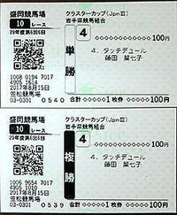 地方競馬での菜七子フィーバーは健在。「タッチデュール&藤田菜七子」が印字された単複のがんばれ・記念馬券を笠松場外で買ってみたが、結果は「やっぱりなあ」の12着に終わった。菜七子騎手は、ヤングジョッキーズシリーズ(YJS)盛岡ラウンドにも参戦。1着と3着でJAR東日本のトップに立った。