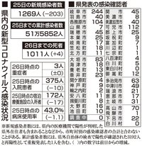 【26日・新型コロナ詳報】岐阜県で1269人感染、9日連続で前週同じ曜日下回る 4人死亡