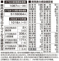 【28日・新型コロナ詳報】岐阜県で1087人感染、3人死亡 1週間の感染者2カ月半ぶり1万人下回る