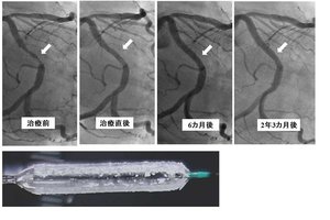1977年9月、世界で初めて冠動脈の狭窄(きょうさく)をバルーンカテーテルで拡張するいわゆる風船治療が40歳男性に対して行われ、見事成功しました。冠動脈に異物を残さないこの治療法は、強い抗血小板薬を飲む必要がなく長期予後も良好でした。しかし、風船治療単独では治療後3カ月前後で病変部が再び狭くなる再狭窄が20~30%の患者で起こることが問題でした。