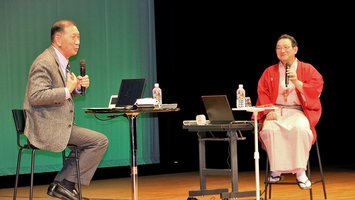 春風亭昇太さん山城熱弁「松尾山もっとアピールして」岐阜・関ケ原町、研究者と対談