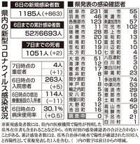 【7日・新型コロナ詳報】岐阜県1185人感染、2人死亡 前週の同じ曜日を21日連続で下回る