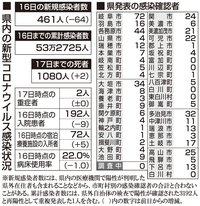 【17日・新型コロナ詳報】岐阜県で461人感染、2人死亡 31日連続で前週の同じ曜日下回る