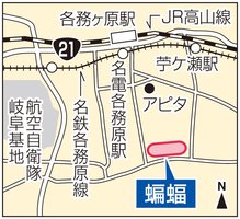 夜にコウモリよく見た→地名「蝙蝠」現在は住宅地 岐阜・各務原市