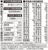 【25日・新型コロナ詳報】岐阜県は515人感染 前週土曜より100人増 死亡確認は1人