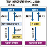 警察官通報を受理して行政職員が事前調査し、医療につなぐか判断した上で診察先へ移送する-。こうした業務は岐阜県を含む多くの自治体で保健所が主体となる一方、保健所とは別の機関を設けて対応する都道府県がある。群馬県はその一つで、現在の仕組みは2004年に築かれた。