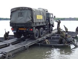 水害に備え、陸自が訓練 ボートをつなぎ川で車両運搬