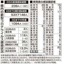 【3日・新型コロナ詳報】岐阜県で239人感染、死者は9日ぶりに確認されず