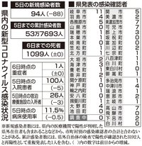 【6日・新型コロナ詳報】岐阜県で94人感染 100人以下は昨年6月20日以来