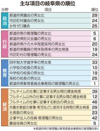 ジェンダー平等、岐阜は行政・教育・政治で順位下げる 経済は改善も37位と低迷