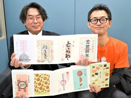 銘菓食べて御菓印ゲット 「柿羊羹」つちや、「みそ入大垣せんべい」田中屋せんべいが配布