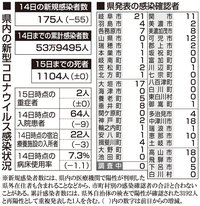 【15日・新型コロナ詳報】岐阜県で175人感染、死者の発表4日連続でなし
