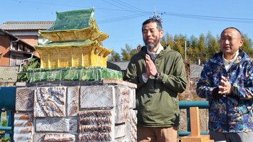 何者かに壊された陶製オブジェ新調 橋欄干に設置、岐阜・土岐市