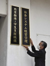 岐阜大の新課程「社会システム経営学環」看板除幕 1期生は32人