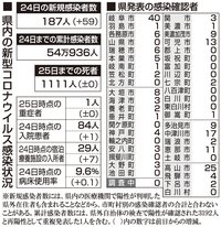 【25日・新型コロナ詳報】岐阜県は187人が感染 死者確認、クラスター公表いずれもなし