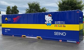 激レア「ハローキティ」貨物列車 西濃運輸がラッピングコンテナ
