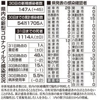 【31日・新型コロナ詳報】岐阜県で147人が感染 3月の感染者数、9カ月ぶりに1万人下回る 新型コロナウイルス 2023年3月31日 19:54 岐阜県と岐阜市は31日、県内で3... 残り325文字(全文:342文字) この記事をお読みいただくには「デジタルプラン」または「宅配+デジタルプラン」の会員登録が必要です。無料会員の方はログインしてマイページからコース変更してください。デジタルプランまたは宅配+デジタルプランをご登録中の方はログインしてください。 岐阜新聞デジタル会員に登録すると 無料会員向け記事が読める ニュースレターで最新情報が受け取れる デジタルプラン、宅配+デジタルプランなら Webオリジナルコンテンツが読める 紙面ビューアが読める チケットの先行発売に参加できる お得なクーポンが使える 新規登録ページ ログインページ トップ 岐阜のニュース 新型コロナウイルス 【31日・新型コロナ詳報】岐阜県で147人が感染 3月の感染者数、9カ月ぶりに1万人下回る 関連記事 「勝つことで恩返しをしたい」 力士として成長誓う 安強羅さん、出身大で卒業祝うセレモニー 17選挙区19人が無投票当選 岐阜県議選が告示、9選挙区で選挙戦に 恵那峡染める桜色 ソメイヨシノ600本見頃、ライトアップも 接待伴う飲食店でバイト、20代女性空士長停職 空自岐阜基地 【記者が突撃!!工場探検隊】プロ選手のバットやゴルフクラブ、職人の技 ミズノテクニクス コロナ感染者急増、夏休みで人流活発「若い人も後遺症リスク、警戒を」岐阜県がメッセージ おすすめ記事 「自分を変えたい」ならここ! 少人数で学び直し×就労体験で人生を開く八百津の高校 【ぎふ高校研究】 3メートル超の巨大絵馬登場、運気上がる白馬描く 岐阜・南宮大社 「福女選び」女城主の里で試される運と健脚 岐阜・恵那市で1月8日、参加募る 金華山で下山中転倒、足首骨折 岐阜市